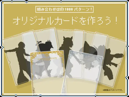 各タイトルのミニゲームや Gemini エリアで遊ぶと、カードのパーツをゲットできます。キャラクターのカードだけでなく、背景のカードも多数!お気に入りのキャラと背景でオリジナルカード作りを楽しみましょう。